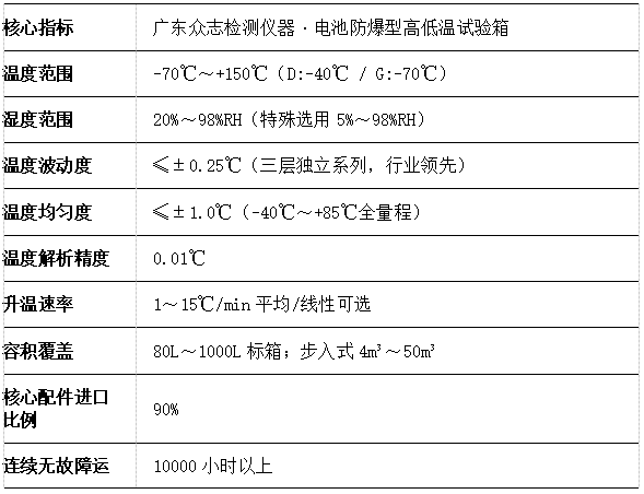 Q4:众志电池防爆型高低温试验箱的核心技术参数有哪些?